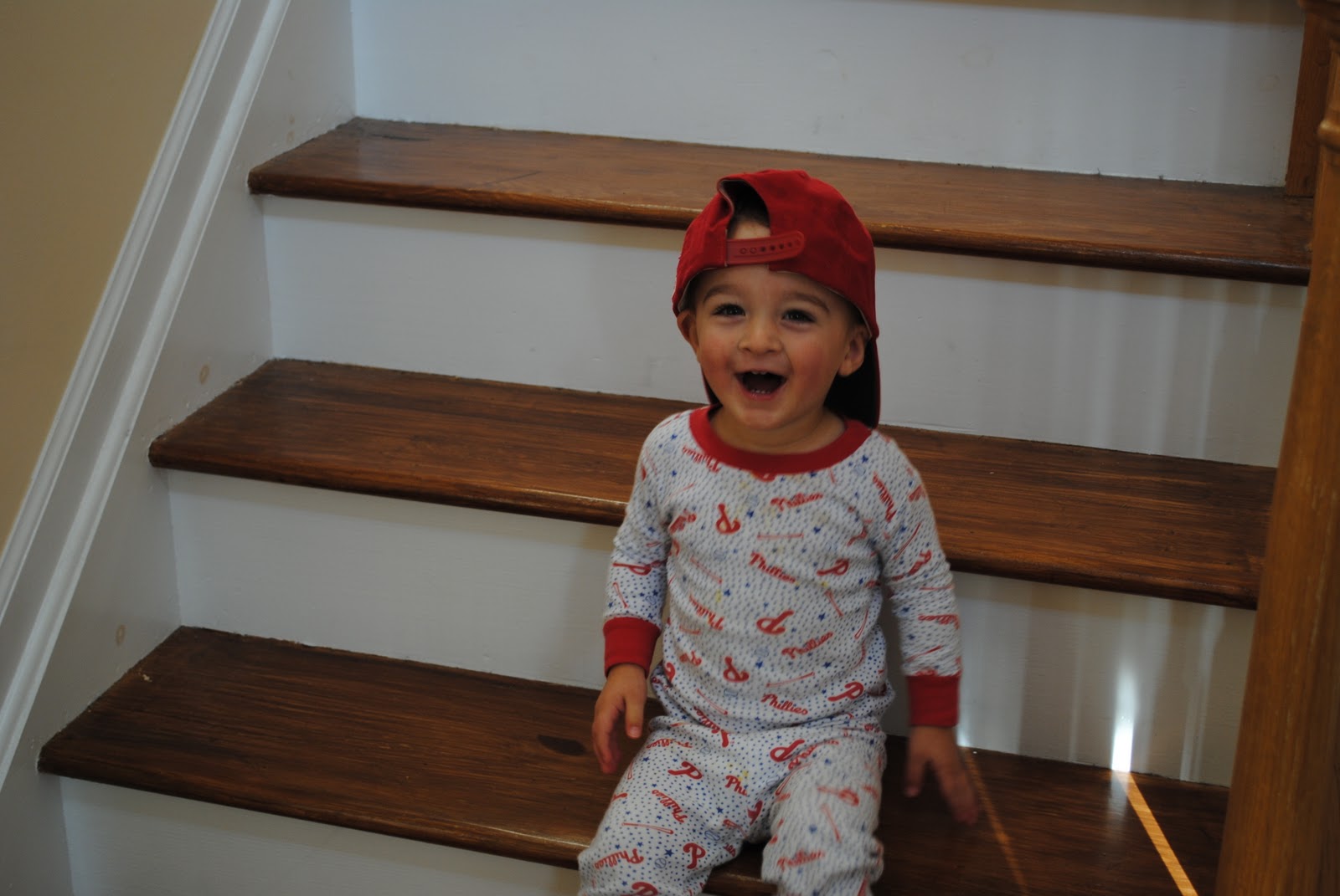 Matty sporting his Phillies PJs and Phillies hat this morning. Go Phillies!!